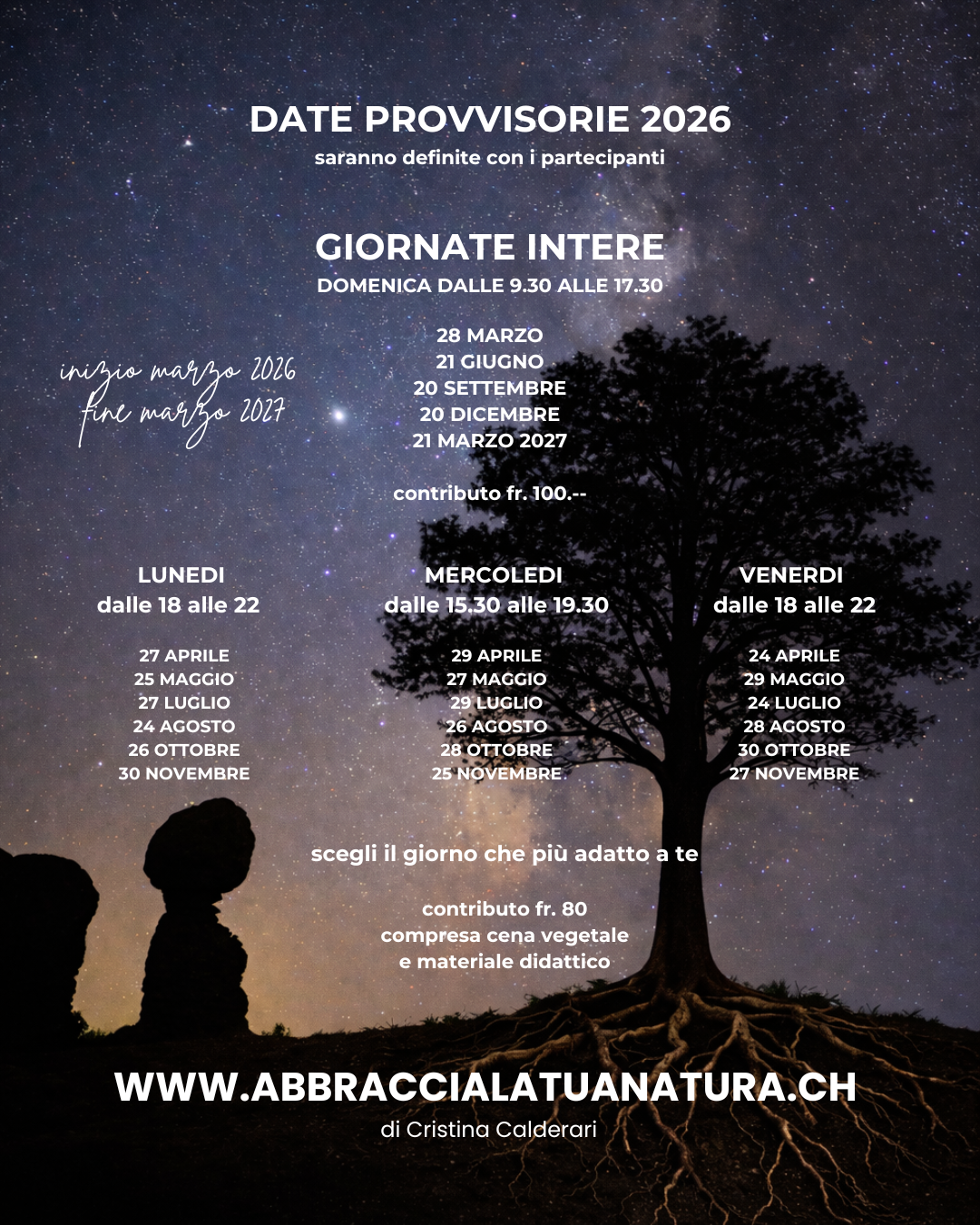 Date, orari e durata, e il contributo li trovi nella fotografia.